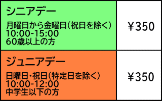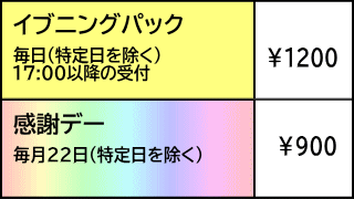 通常料金のほかにお得なパック、サービスデー、パックを用意しております