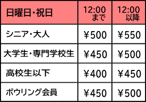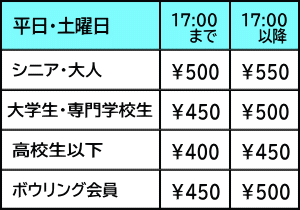 価格はおひとり様、1ゲームあたりの料金です レンタルシューズは別途1足200円です